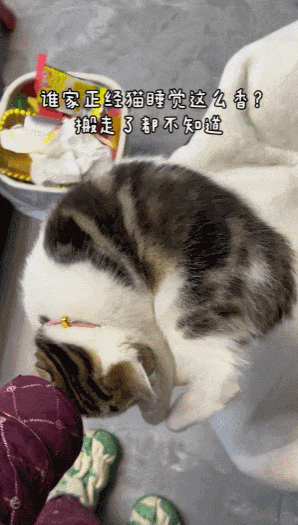 网友@小美是虎妞 发了条视频,还调侃自家小猫:“谁家正经猫睡觉这么香?被搬走了都不知道!”