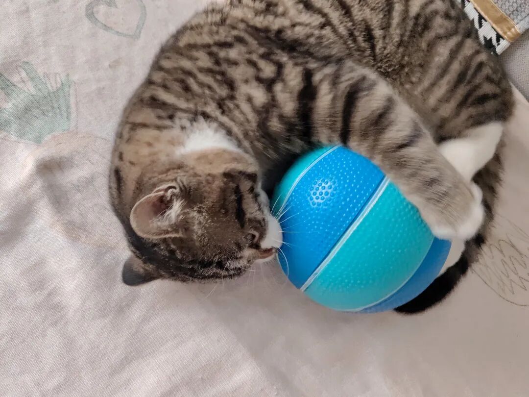 今早和小宝玩球,也让它玩一下