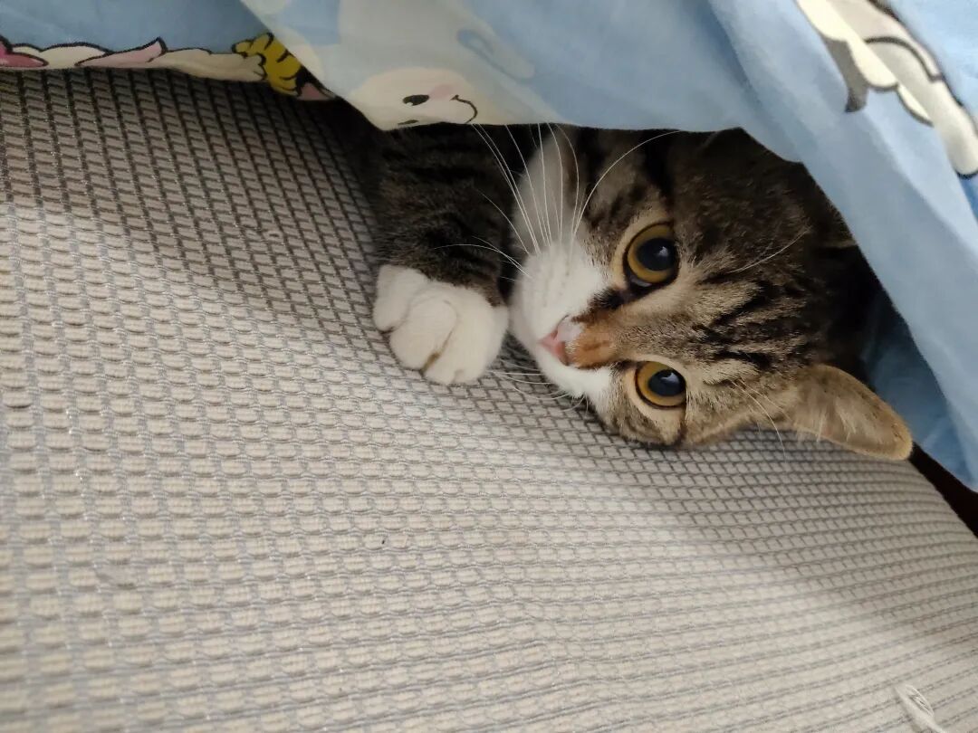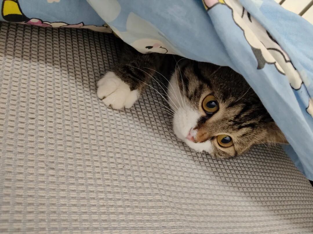 喜欢钻小被里,藏猫猫