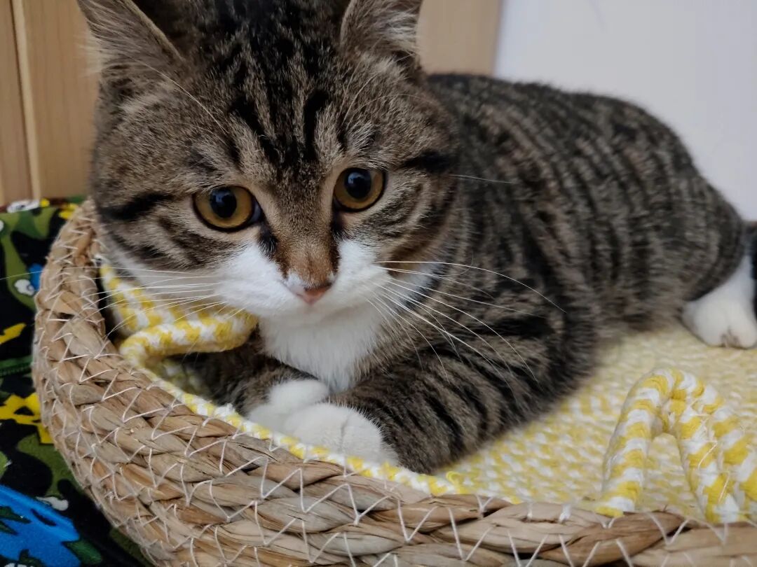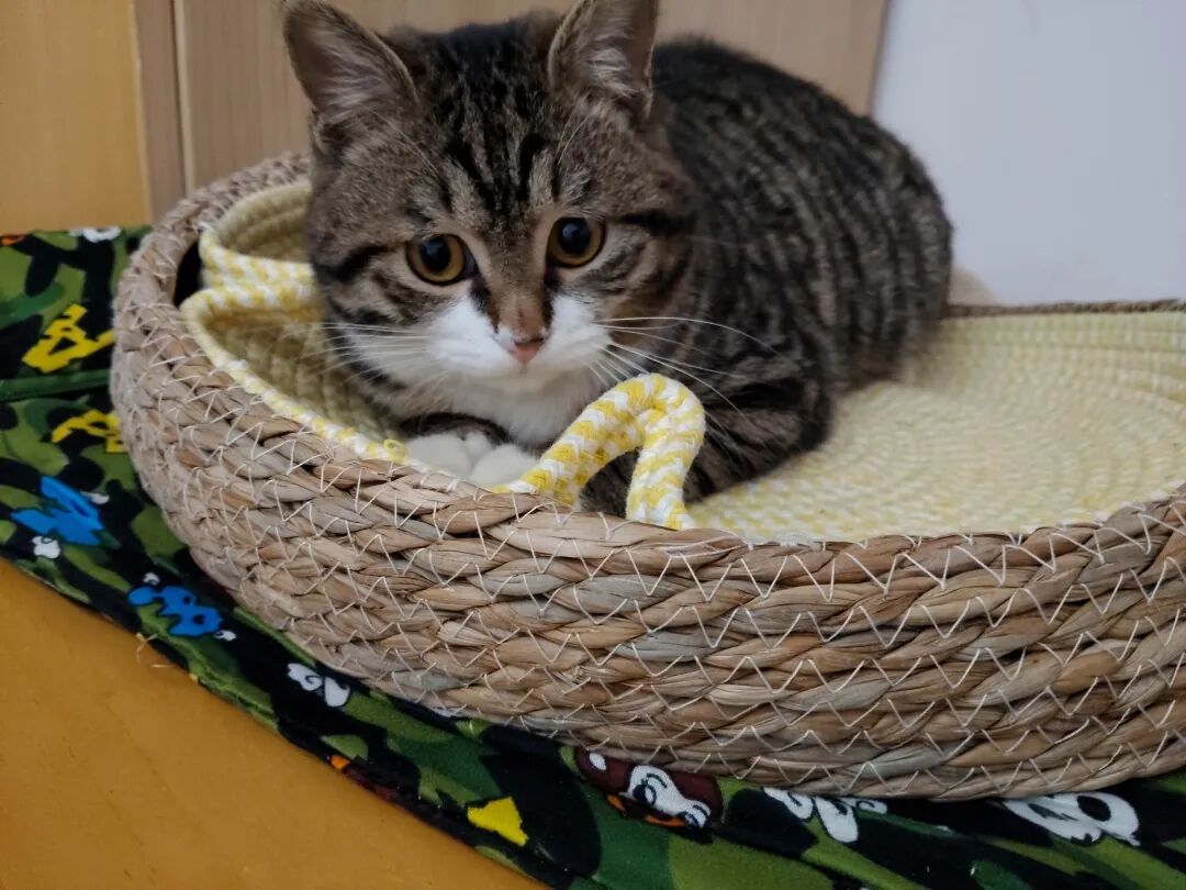 这不星期六洗了澡后,晚上让猫仔进了卧室,把它的猫窝放在了床头柜上,它屁颠屁颠地过去了,静静地趴在那里。