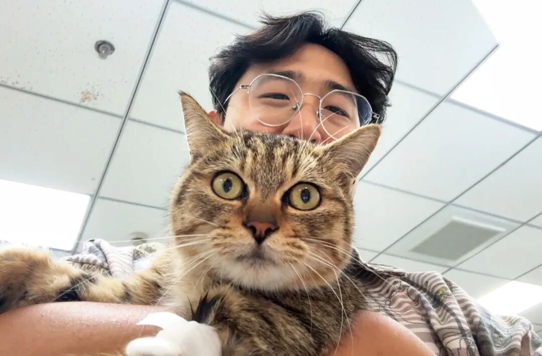 小猫见到我时还是一瘸一拐的向我们走了过来