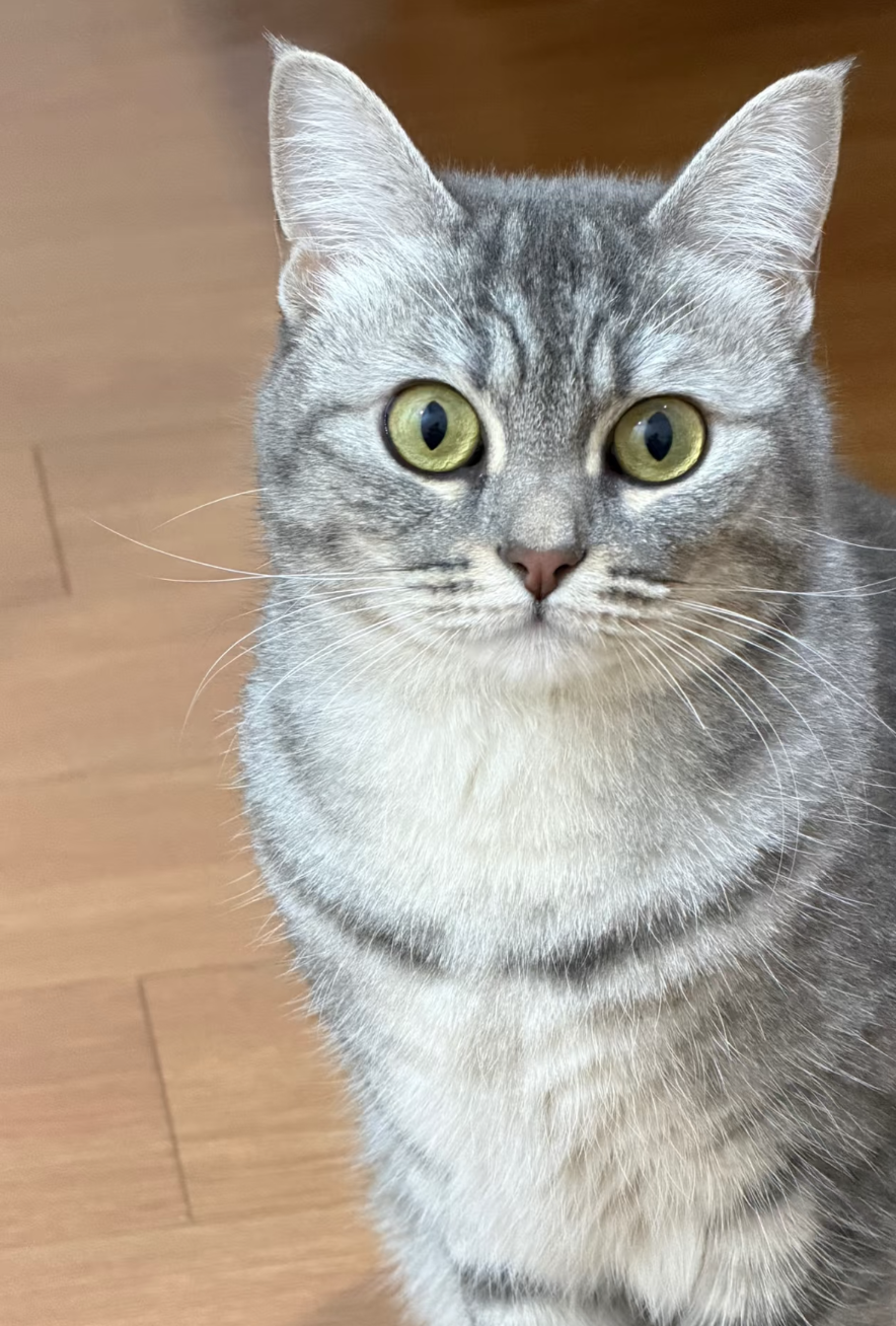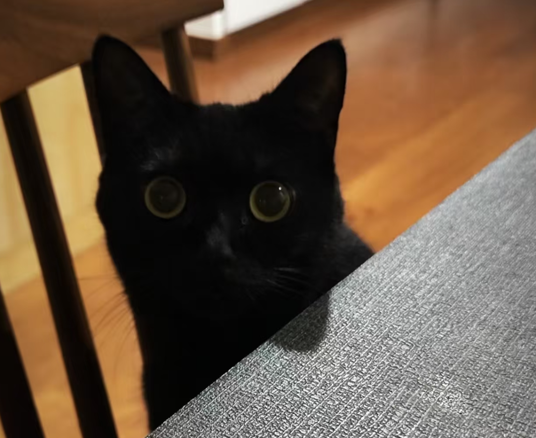 我家猫想吃猫条时,眼睛瞪得大大的,一脸虔诚和无辜,让人没办法不给它吃。