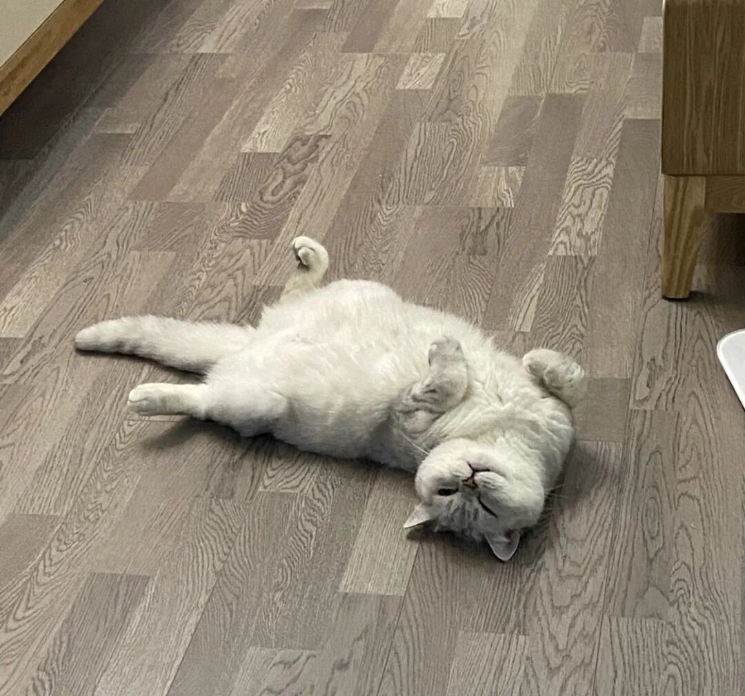 早上刚醒,就看见我家猫四仰八叉瘫在客厅地板上,肚子露得明明白白,爪子还蜷成个小拳头。
