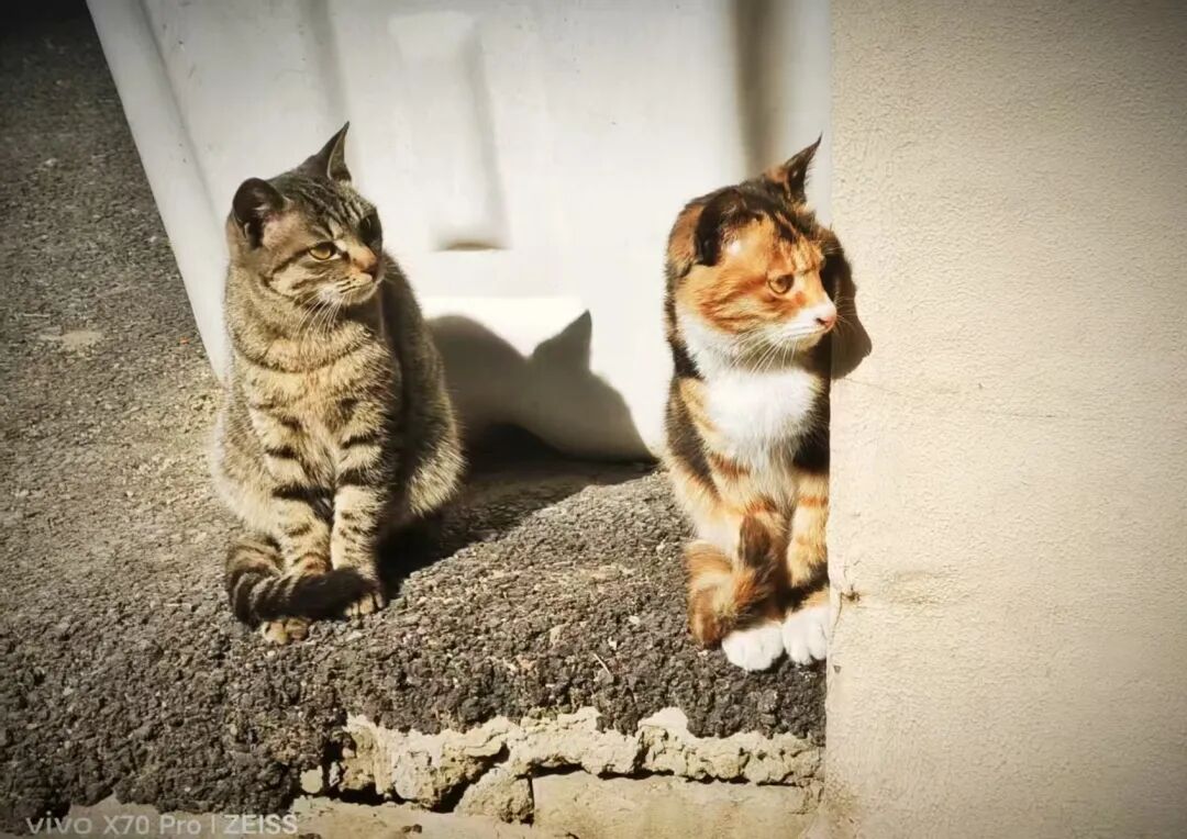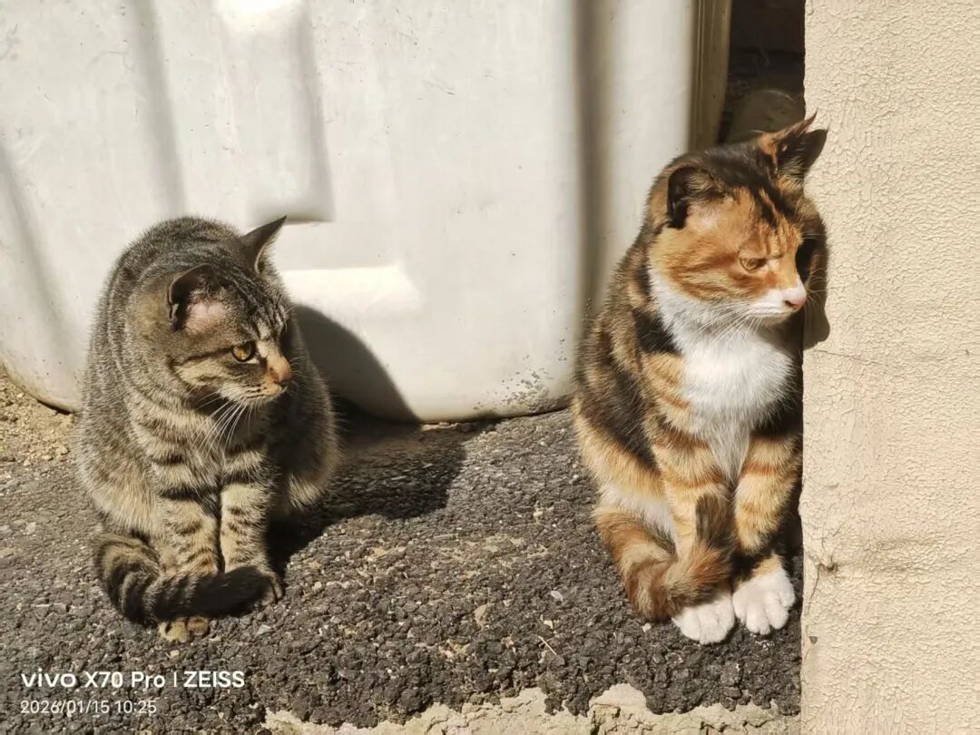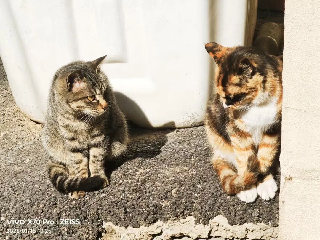 这次见我过来,居然都不躲闪了。两只小猫咪的转变,倒像是事先讲好了一样。