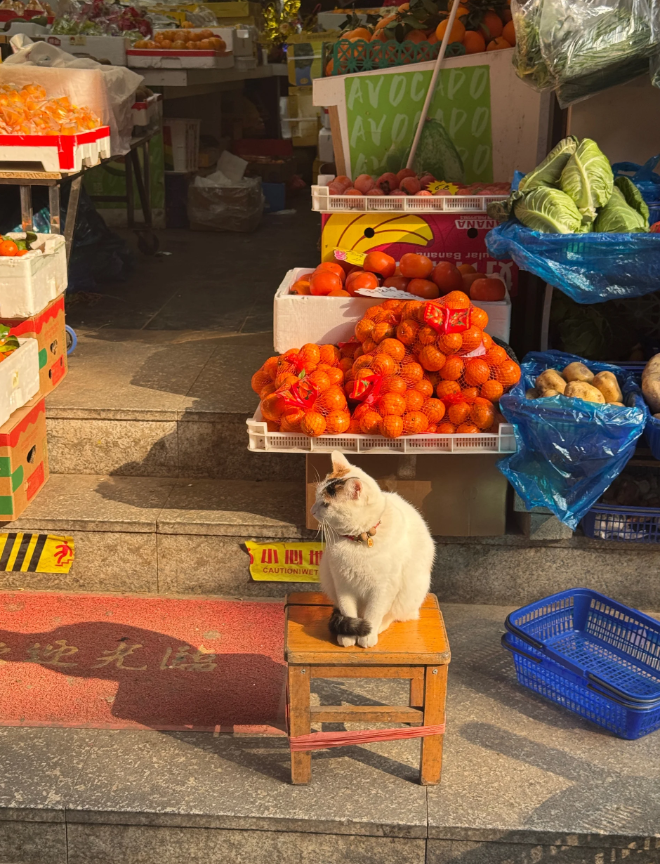 网友>@>以形补形人间草莓精🍓说他们附近蔬菜店养了一只猫,猫猫很可爱。有一次为了看猫猫就去蔬菜店里,原本计划是只看猫不买菜,结果最后还是感觉不好意思,就顺便买了点蔬菜才出来。