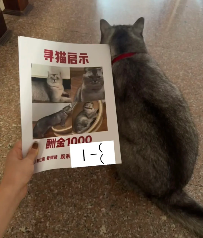 没办法,>最后打印出《寻猫启事》,写上酬金1000,希望有人看见猫猫能联系主人,早日找到猫猫。