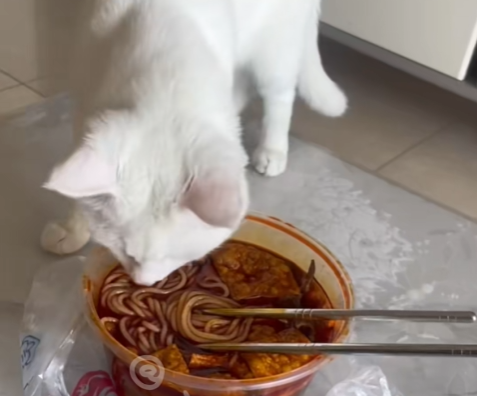 再比如,当你吃榴莲、螺蛳粉时,你的猫可能已经惊呆了,这是由于猫咪的嗅觉很灵敏,而螺蛳粉的气味在猫的世界里是和猫砂联系在一起的。