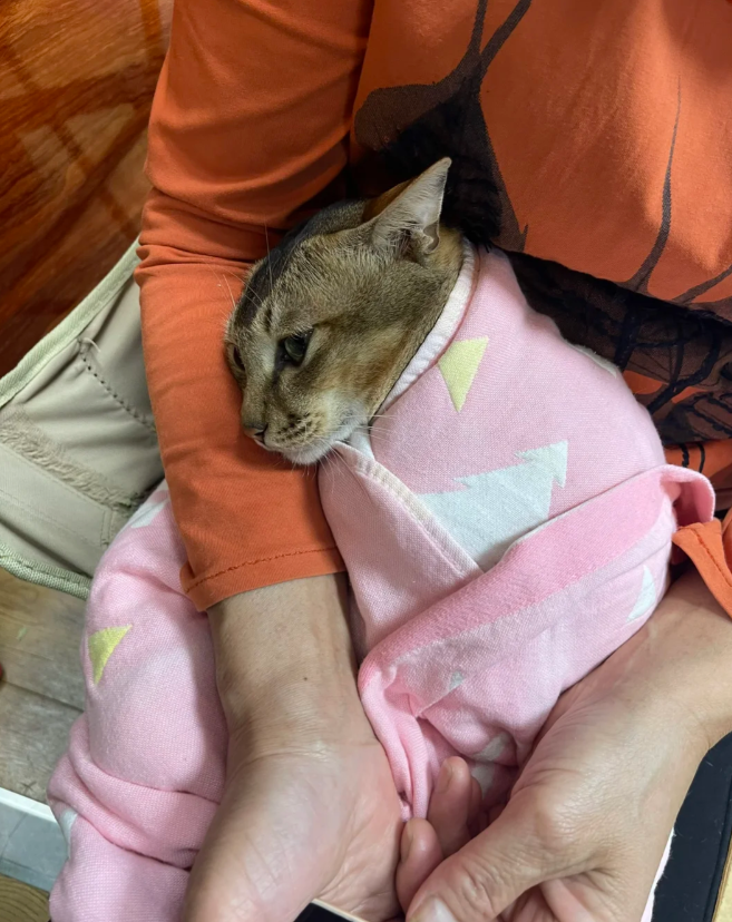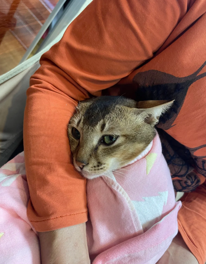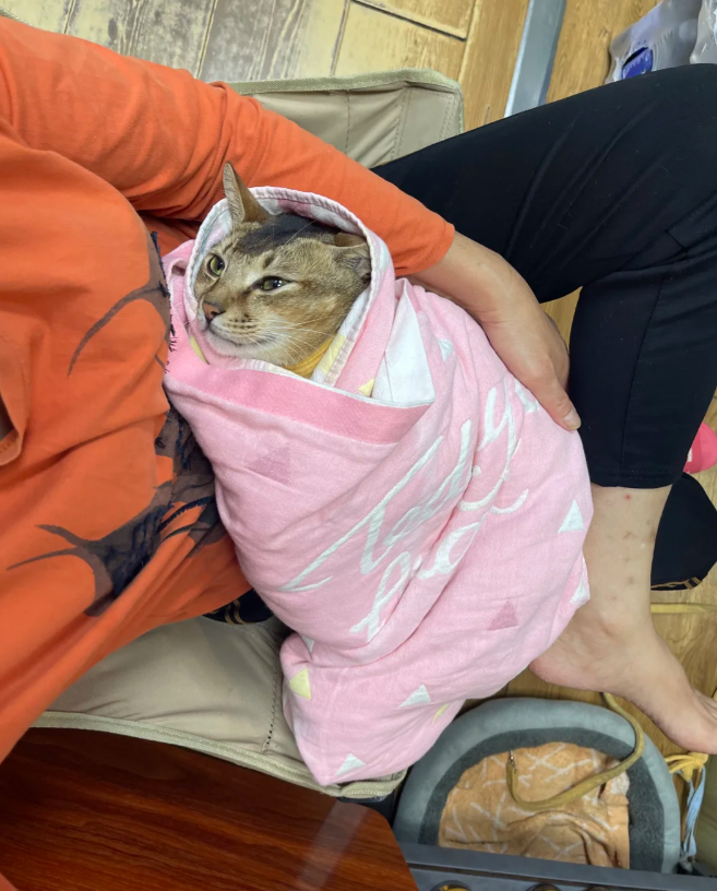 奶奶很爱猫,把小猫包裹着抱在怀里,就像抱孩子一样。 而猫在奶奶怀里很享受,不挣扎不骂人,乖乖躺着。猫:奶奶,我是不是你的乖宝宝? 好温馨、好可爱呀,奶奶抱着猫猫,猫猫依偎着奶奶。 感受到猫猫和奶奶在一起的幸福了!