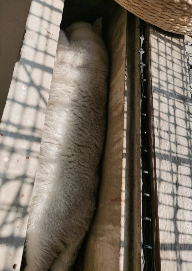 坑里还有一只,睡得笔直笔直的,这个坑就像是专为猫准备的猫窝一样。