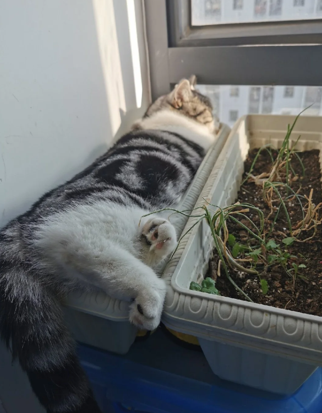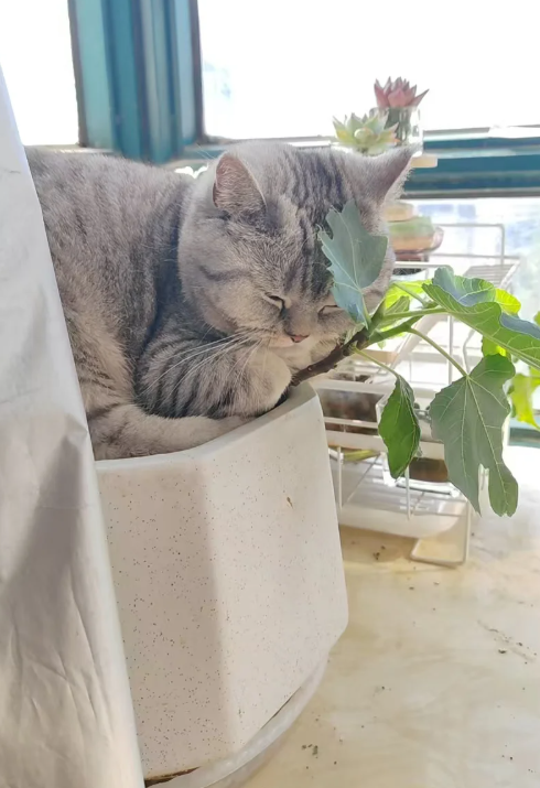 虽然都说养了猫就不要养绿植,但有时候真的忍不住想养一小盆啊,这样又可以看猫猫和绿植“打架”了。