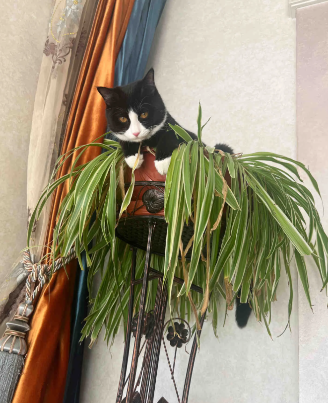 猫猫长大后,吊兰有点不堪重负了。