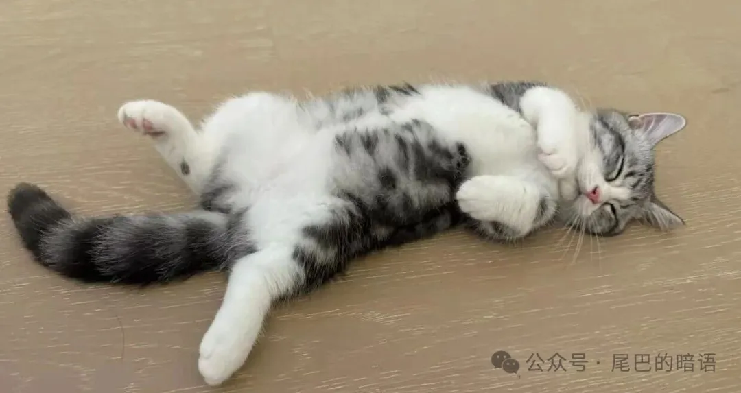 但当你家猫开始像一坨被太阳晒软了的年糕一样,四仰八叉地躺在客厅中央,肚皮朝天、脚爪摊开、尾巴一动不动,甚至还打呼噜……