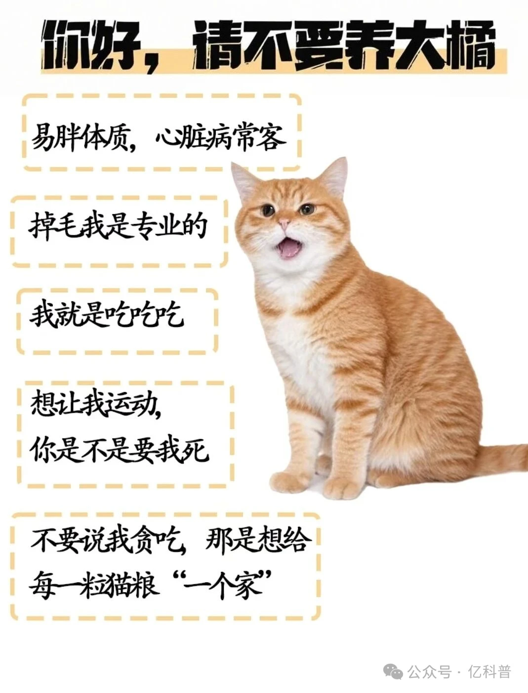 给饭就吃,出肉量高,性格温顺,情绪稳定,湾湾口音,品种真的太优良啦少壮不减肥,老大徒伤悲!!橘猫小时候不保持身材,长大就成橘猪了,都不能翻身了,好想帮忙