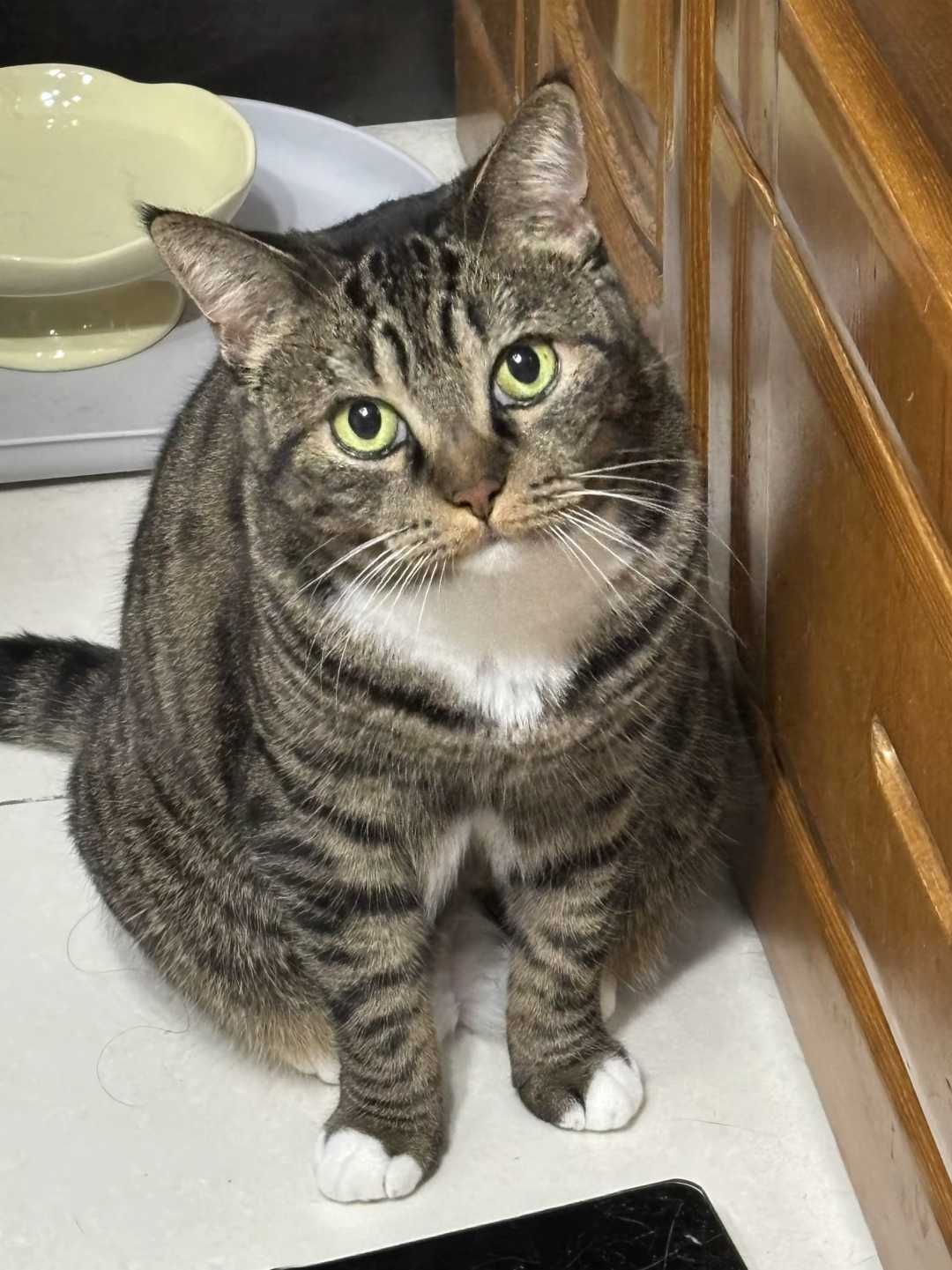 本以为长大后会是依旧软萌的小王子,依旧软萌的小王子,结果有网友甩出了同款花纹猫咪的成年照——这蹲在柜子旁的模样,眼神里多了几分沉稳,倒是依旧保留着胸口的白围脖,妥妥的「颜值守恒」了!