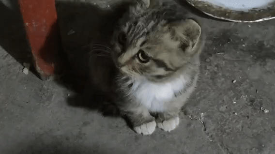 蹲在地上的小怂包,眼神里全是好奇与警惕~