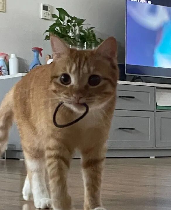 猫的脑回路真的很神奇 , 明明家里猫玩具一堆 , 偏偏就盯上橡皮筋 , 越小越危险的东西 , 它越上头 , 这是什么奇怪癖好啊~