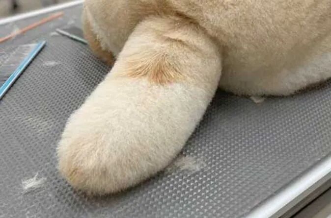 狗子刚做完美容 , 主人随手拍了一张背影图发网上 , 直接炸了 , 那个毛量 , 圆滚滚的 , 像个会动的抱枕 , 不 , 比抱枕还诱人 , 你看那一坨坨的绒毛往外支棱着 , 谁能忍住不想rua一把?