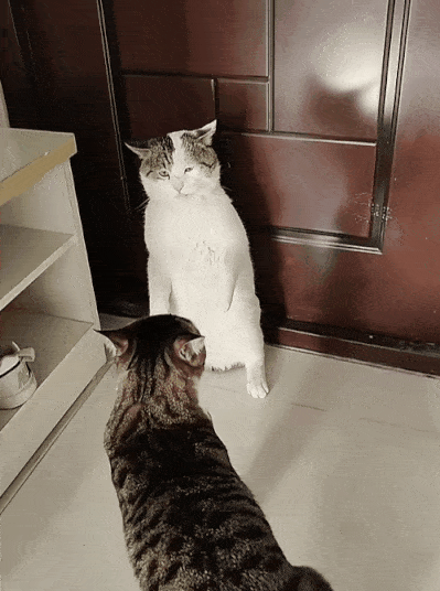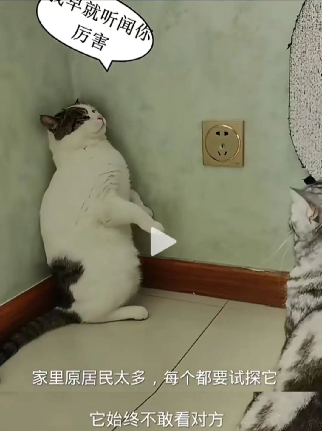 小猫真是有凶又怂,妹子发现它很怕家里的原著民