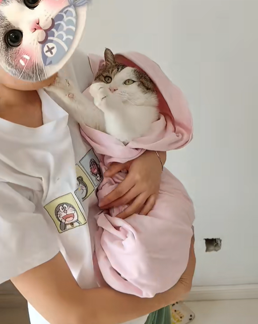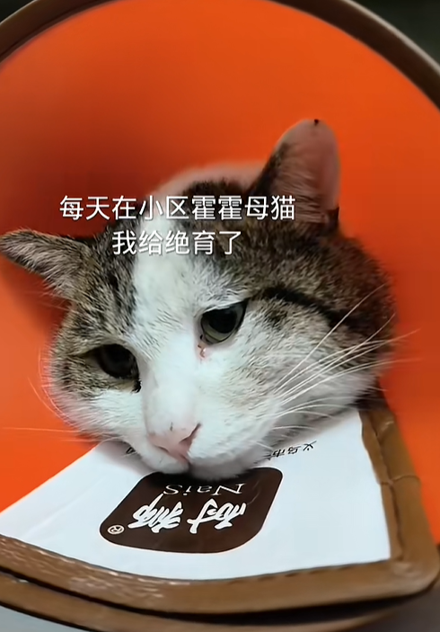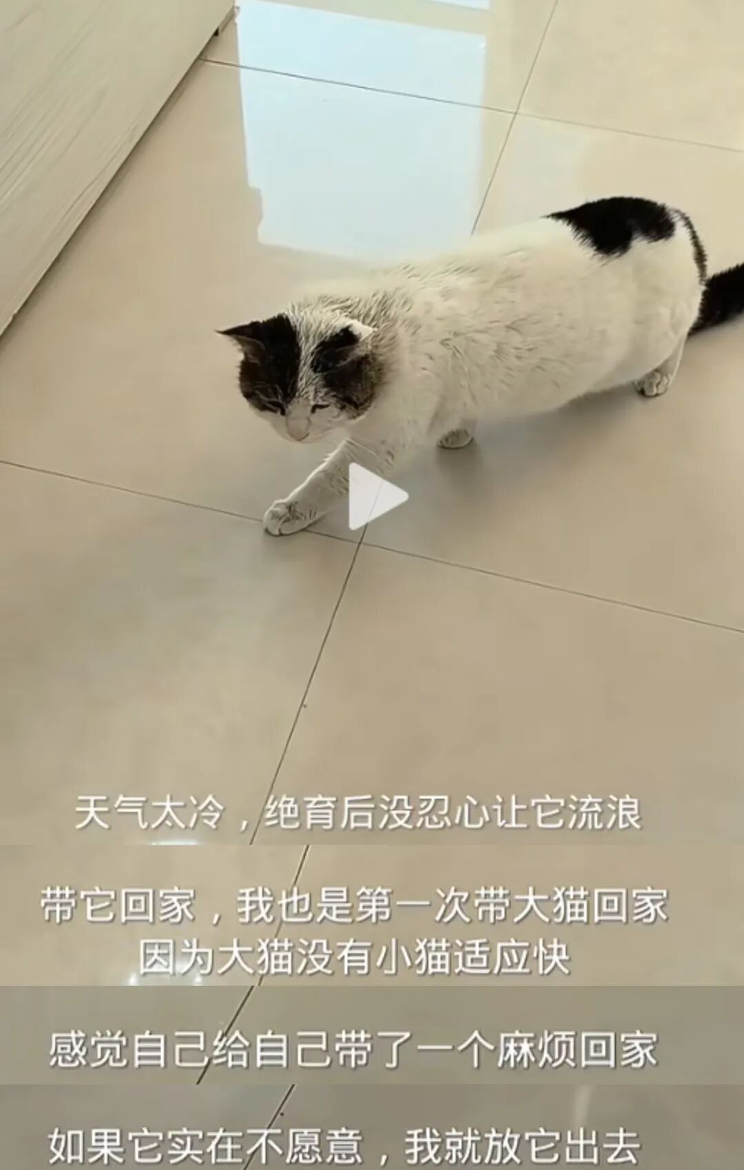 善良的妹子怕太天气太冷,绝育完不忍心小猫马上再次流浪,就把它带回家