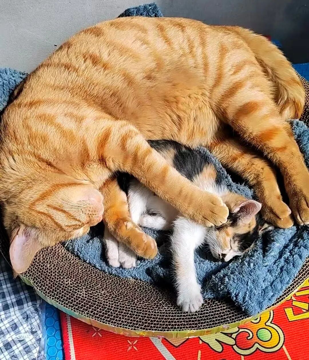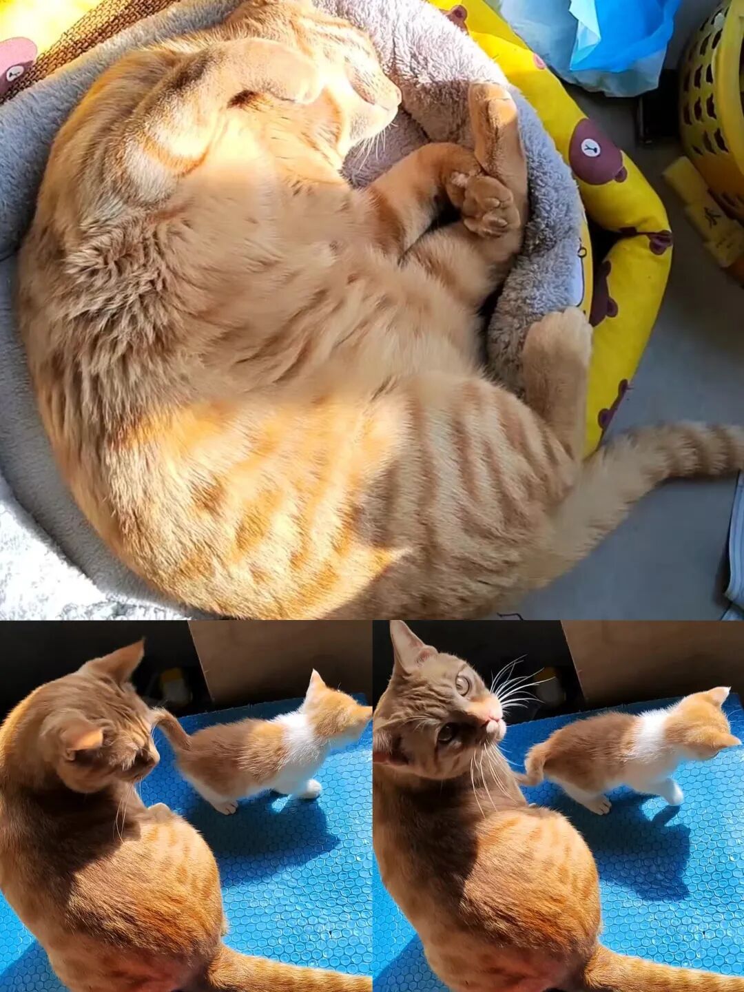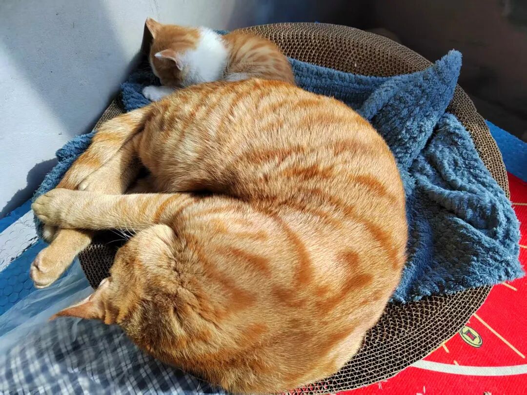 陪吃陪玩陪睡觉一发不可收拾。带大儿女接着带儿孙哈。橘橘是真心爱上小奶猫了,小家伙们也爱上了橘爸爸,孙子孙女也爱橘爷爷。