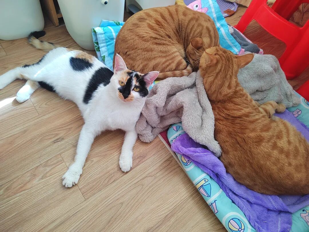 橘橘虽然疯疯癫癫的,即使当了爷爷依旧也皮的很。但是它的子孙后代都不反感它,反而香香成了母老虎哈。