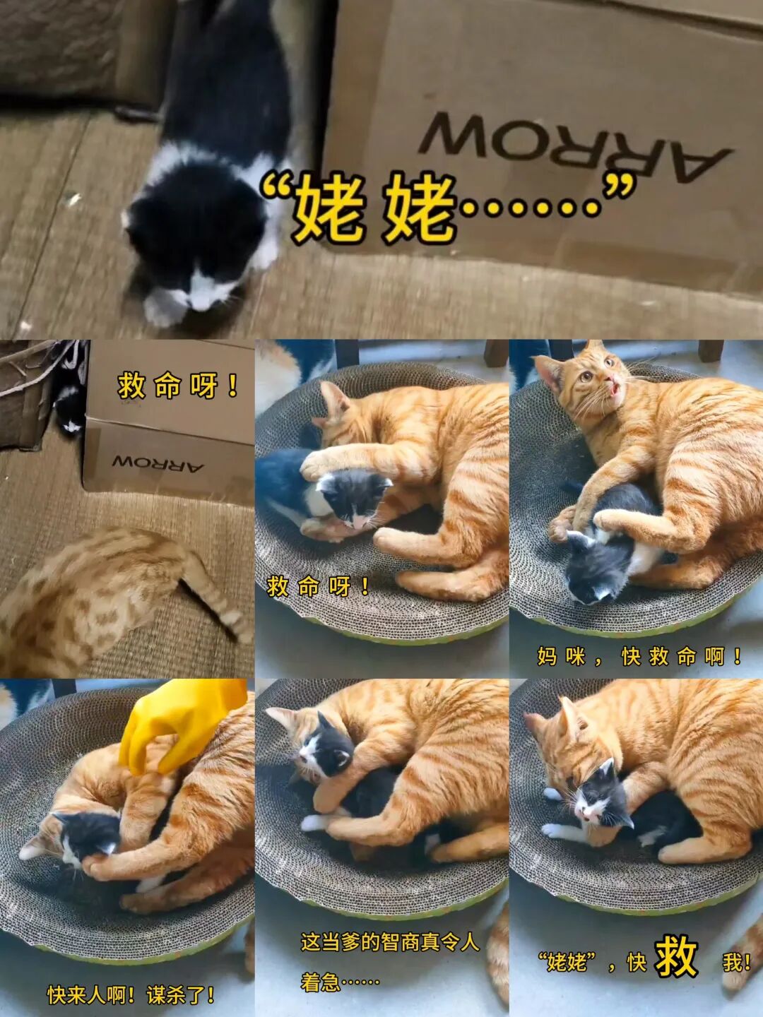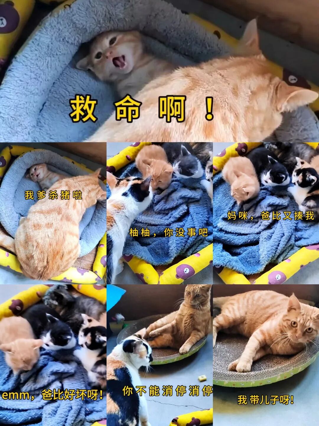 回顾橘橘的成长史真是又生气又搞笑。小奶猫跟橘橘的关系发生了飞天般的转变那是在小猫四个月以后。香香妈咪瞬间翻脸不让娃了,有点类似人类的产后抑郁症。橘爹虽然皮,但是它情绪稳定。即使是在带娃也不知道还是娃带它,可毕竟人家也是初次当爸爸。橘橘自个的娃自个可以欺负,他人不能欺负。