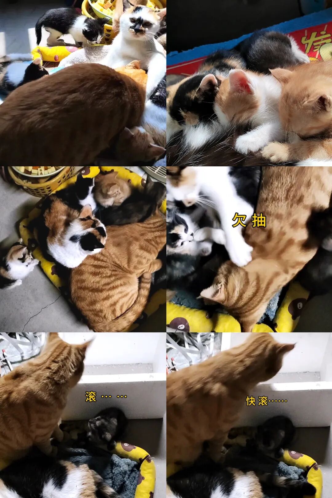 小奶猫刚出生时,香香是宝贝的不得了。还不准你说它哈,说它还会怼你。当小奶猫三个月了,香香又开始发情了。到小猫四个月了,它便开始跟小猫脱离关系。小奶猫一靠近它,它就骂它们赶它们。香香这个妈咪性情大变样,橘爸开始了它的带娃时光。