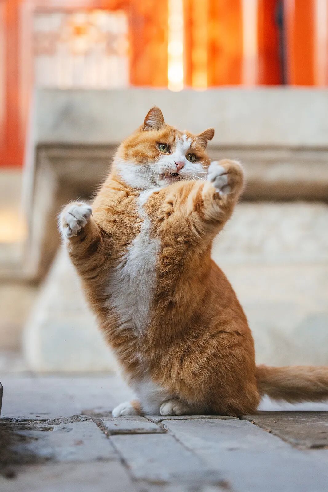 抬头、张嘴、抬爪、站起来——