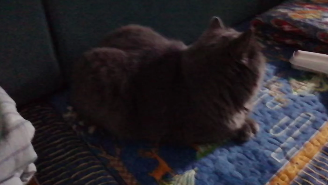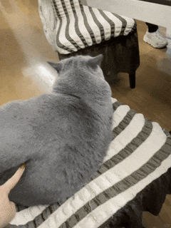 另一位铲屎官家里的蓝猫夏天剃毛后,等毛重新长出来时背上就出现了一条黑线。从后背的角度一看去,猫猫也有了“蜜桃臀”。