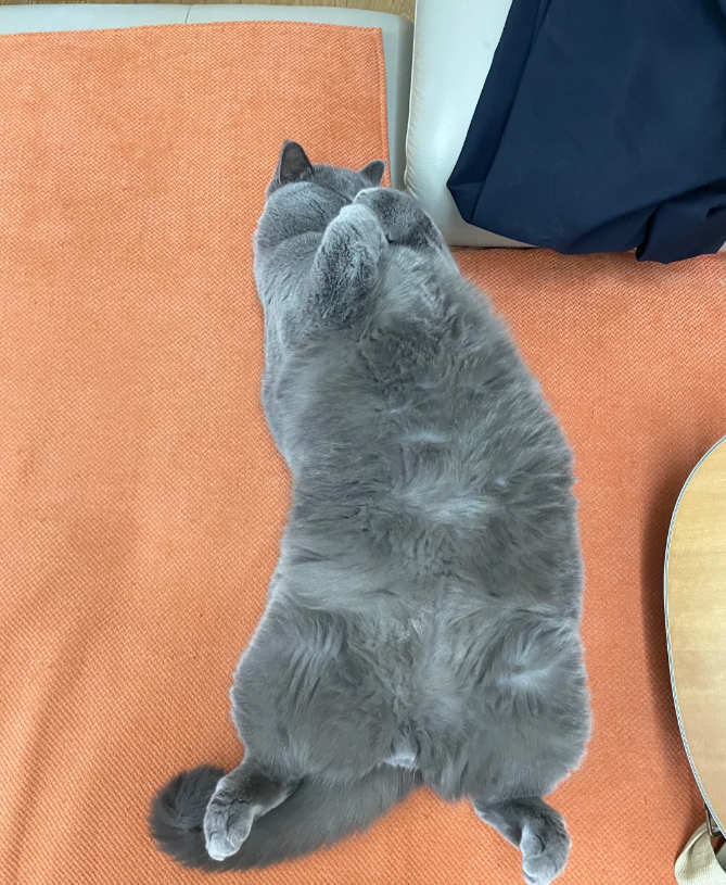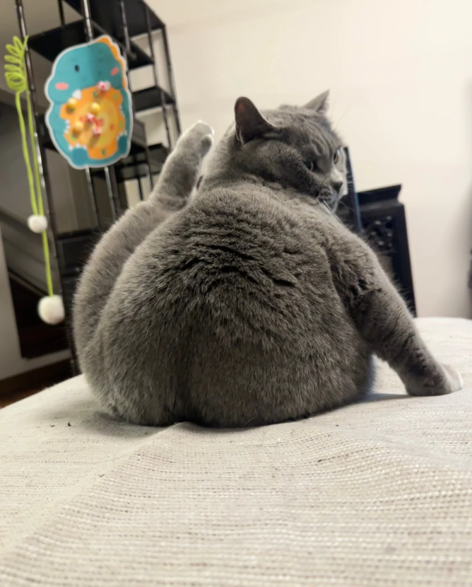 不光有屁股蛋子,猫猫还有肥肥的大肚子,rua起来手感特别好。
