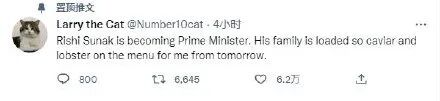 期待新首相给它送鱼子酱和龙虾。