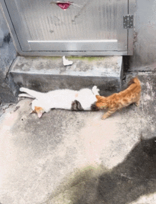 父母是孩子的老师,对于小猫来说也是。妈妈怎么做,娃就跟着怎么做~
