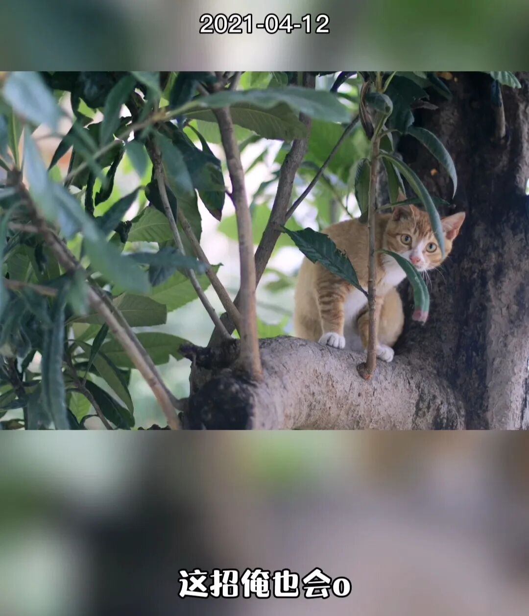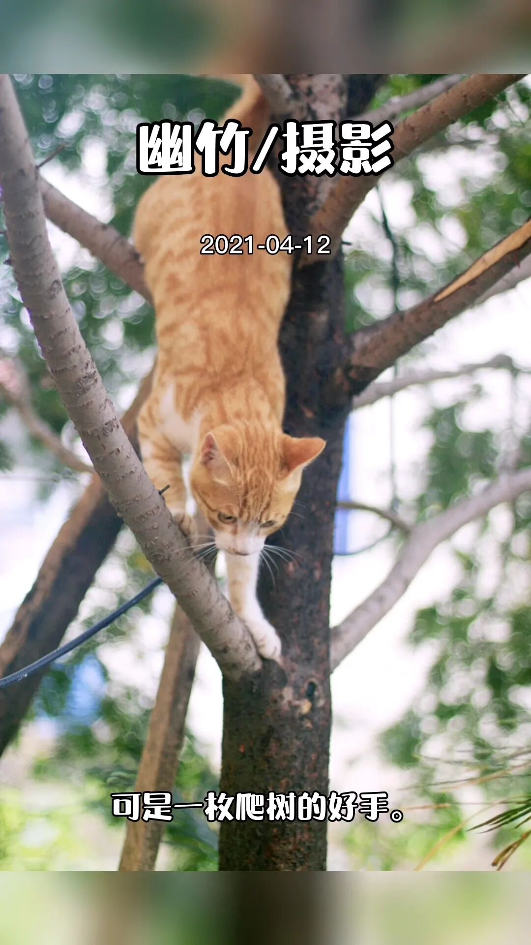 论爬树黄黄、墩墩个个是高手,哪怕咪咪胖了,我也是见过咪咪上树的。