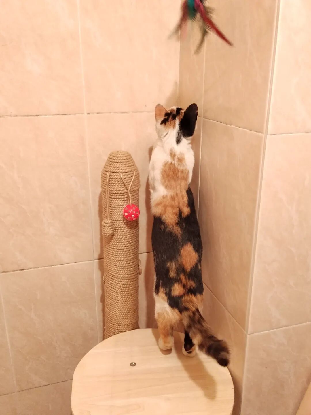尽管现在破破烂烂的,日日必打卡。野外的小猫咪可以爬爬树,家猫只能靠猫爬架、猫爬贴。感觉公猫比母猫要好动,我们家香香几乎不爱爬,但是并不影响它的闺女们爱爬高。别看芯芯胖乎乎的,爬的可好了。