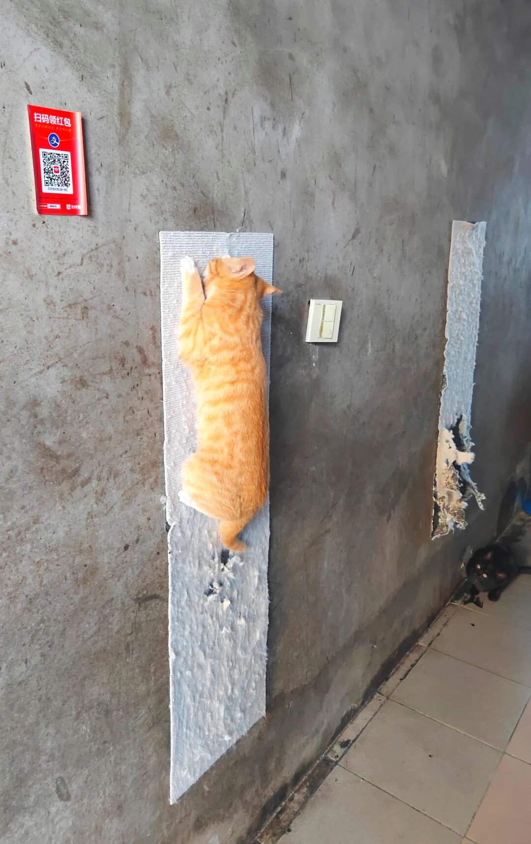这个猫爬架是铲屎官过去给香香亲手做的。用的6号麻绳,装修后多余的pvc管,坐板是网上买的,一张三十多元也不便宜。还是头次当了水泥工,可香香就是不爱玩。到了橘橘这里,橘橘老喜欢。所以我们家其它小猫爱爬树,橘橘这功劳功不可没。