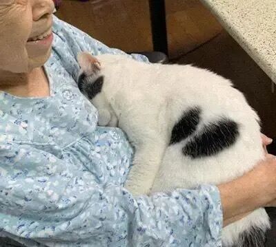 一个月后去接猫 , 场面直接让他破防了 , 猫正躺在奶奶手心里睡得香 , 那个乖巧劲儿 , 他从小到大都没见过?