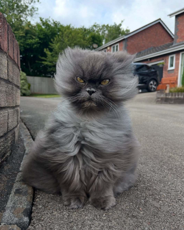 这只长毛猫天生毛发纤长,本就容易蓬乱,赶上大风天出门,那毛躁程度直接拉满。