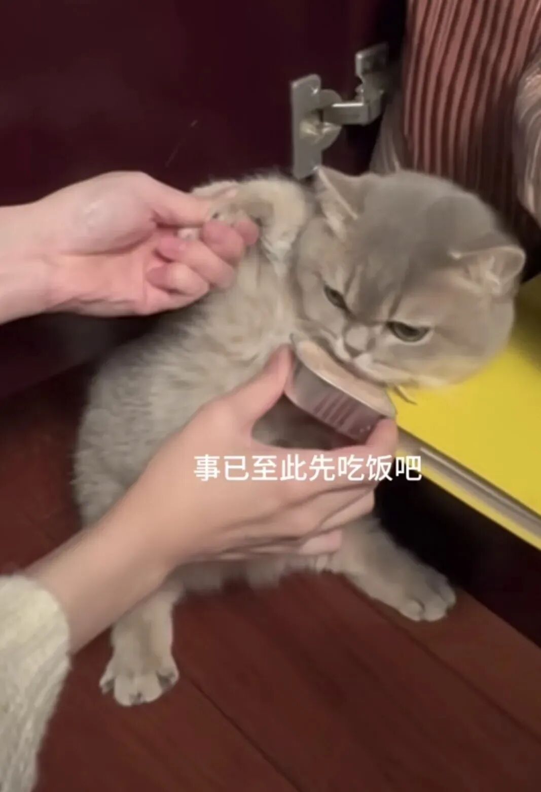 猫咪:啥都没我干饭重要,先吃,吃完再生气。