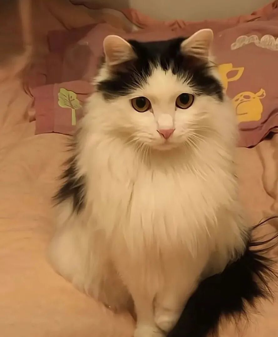 小姐姐养得是一只长毛的奶牛猫,特别漂亮也特别乖。她早上七点出门,跑业务晕车吐到抽搐,下班回家看到猫咪,瞬间就被治愈了!