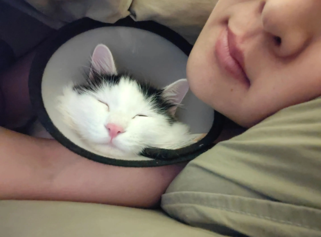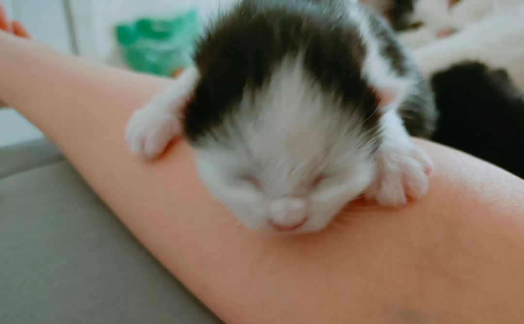 小姐姐和这只小猫的缘分可不浅呢,小猫还是小姐姐接生的,一点一点养大的,小姐姐就是猫妈呀!