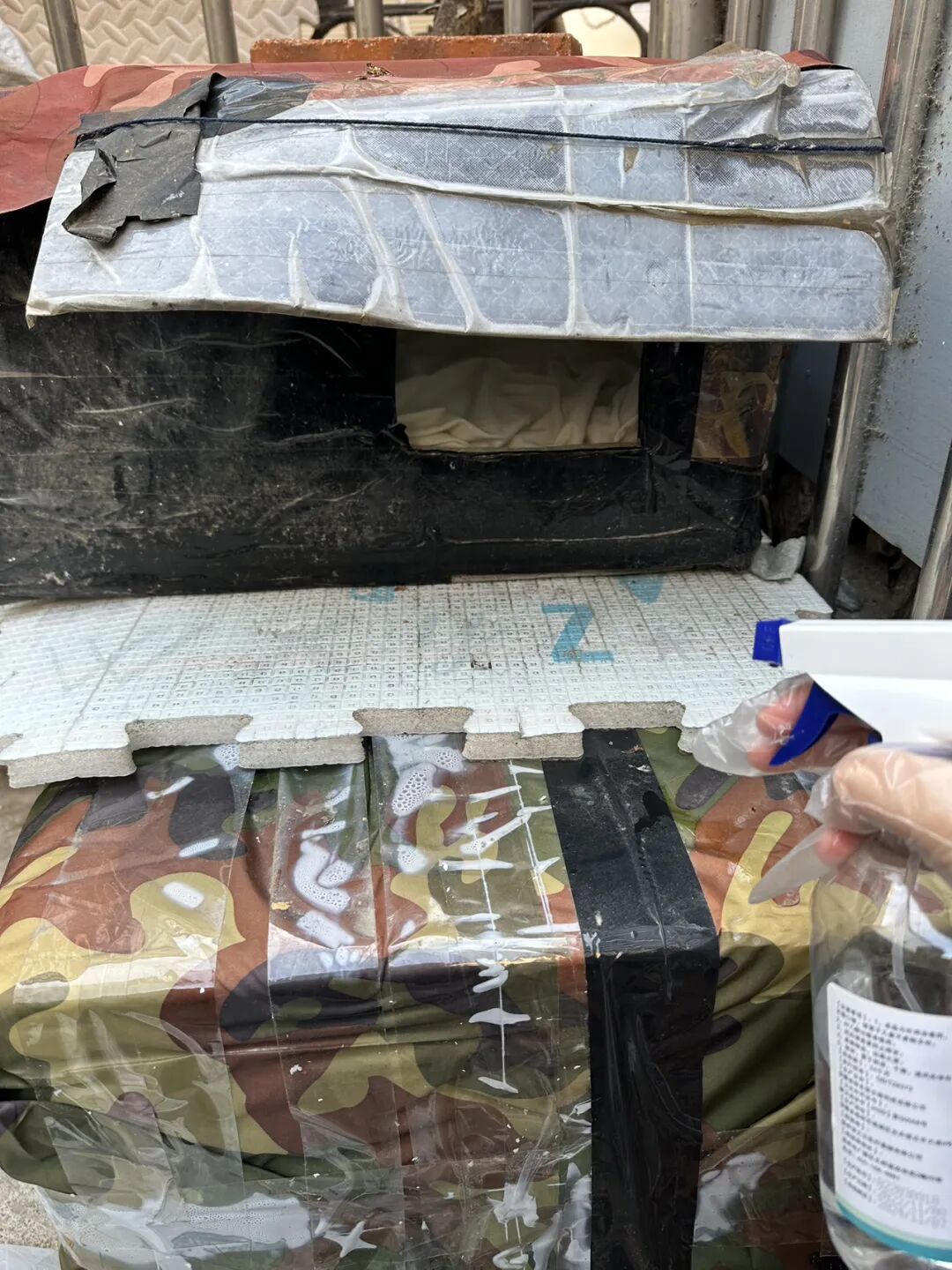 泡沫垫子上喷上酒精消消毒,然后再铺上干净的垫子。