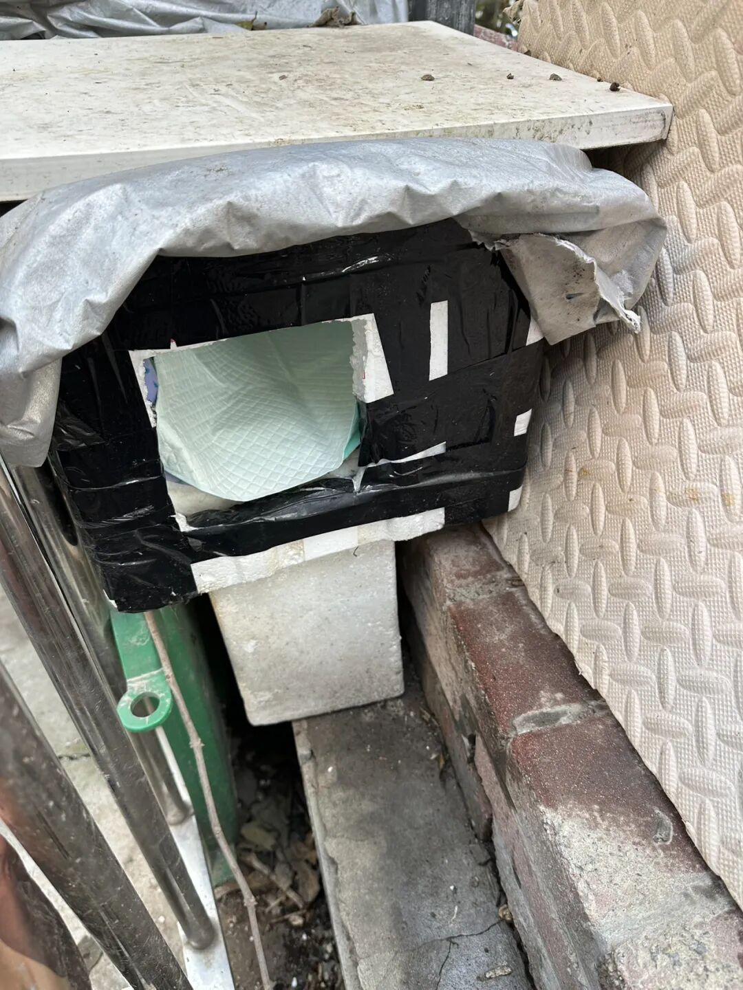 接着是“宿舍”。旧垫子撤出来,窝里用酒精喷过,散散味道。那些软和的旧衣服,一件件铺进去,抻平,给它们搭出个软和暖和的窝。猫可爱干净了,环境清爽,它们才睡得安稳。