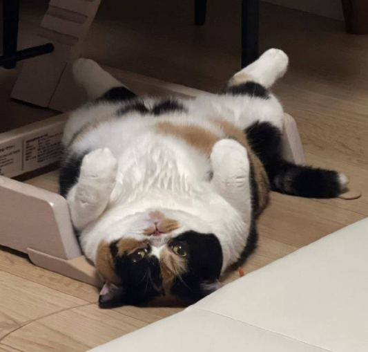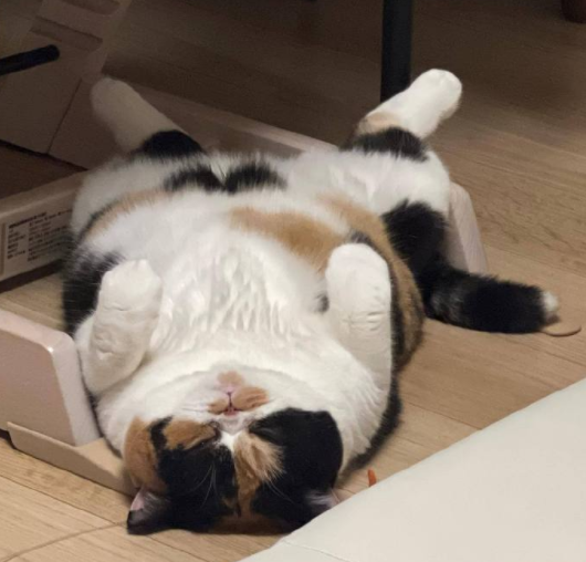 喵喵喵,睡成地毯的还有胖三花~