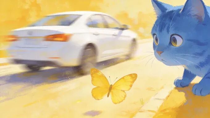 车窗留了一道透气的缝隙。也许是那只亮得晃眼的黄蝴蝶太诱人,当小林转身走向便利店时,小满钻出了那一寸缝隙。