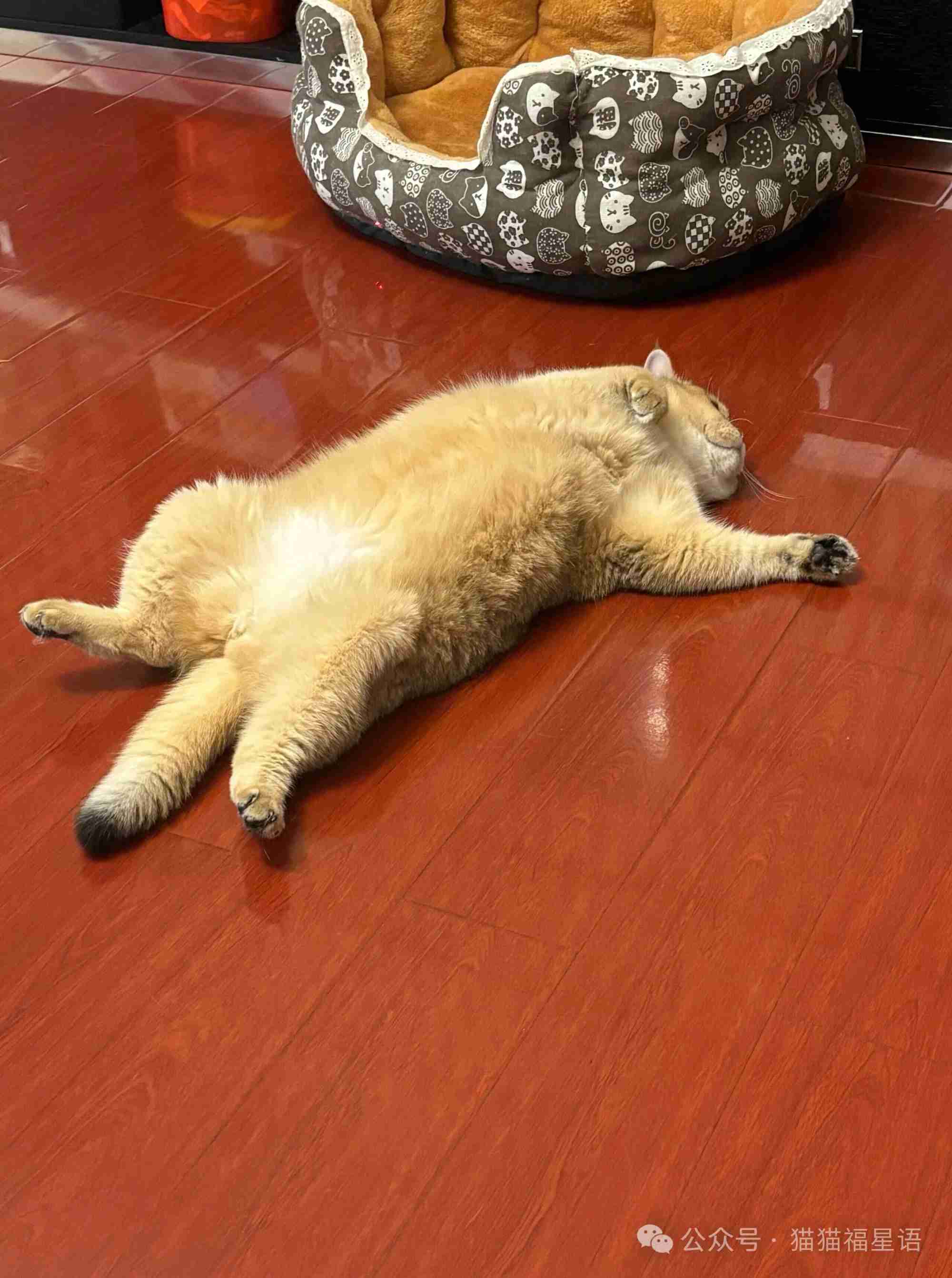 沙发躺、地板躺、桌角躺,主打一个“能躺着就不坐,能摊着就不站”。圆滚滚一大坨摊成猫饼,这么放松,我一个打工人实名羡慕了!