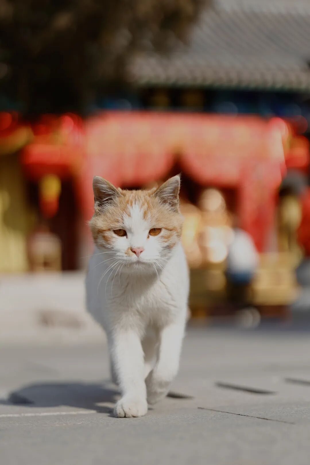 它衔着一缕晨光走来,红绸在身后飘成未敲的钟。舌间探出的粉,是偷尝了供果的甜,还是想问佛——为何香客求缘要跪着,而它迈步便踏出朵朵莲花?