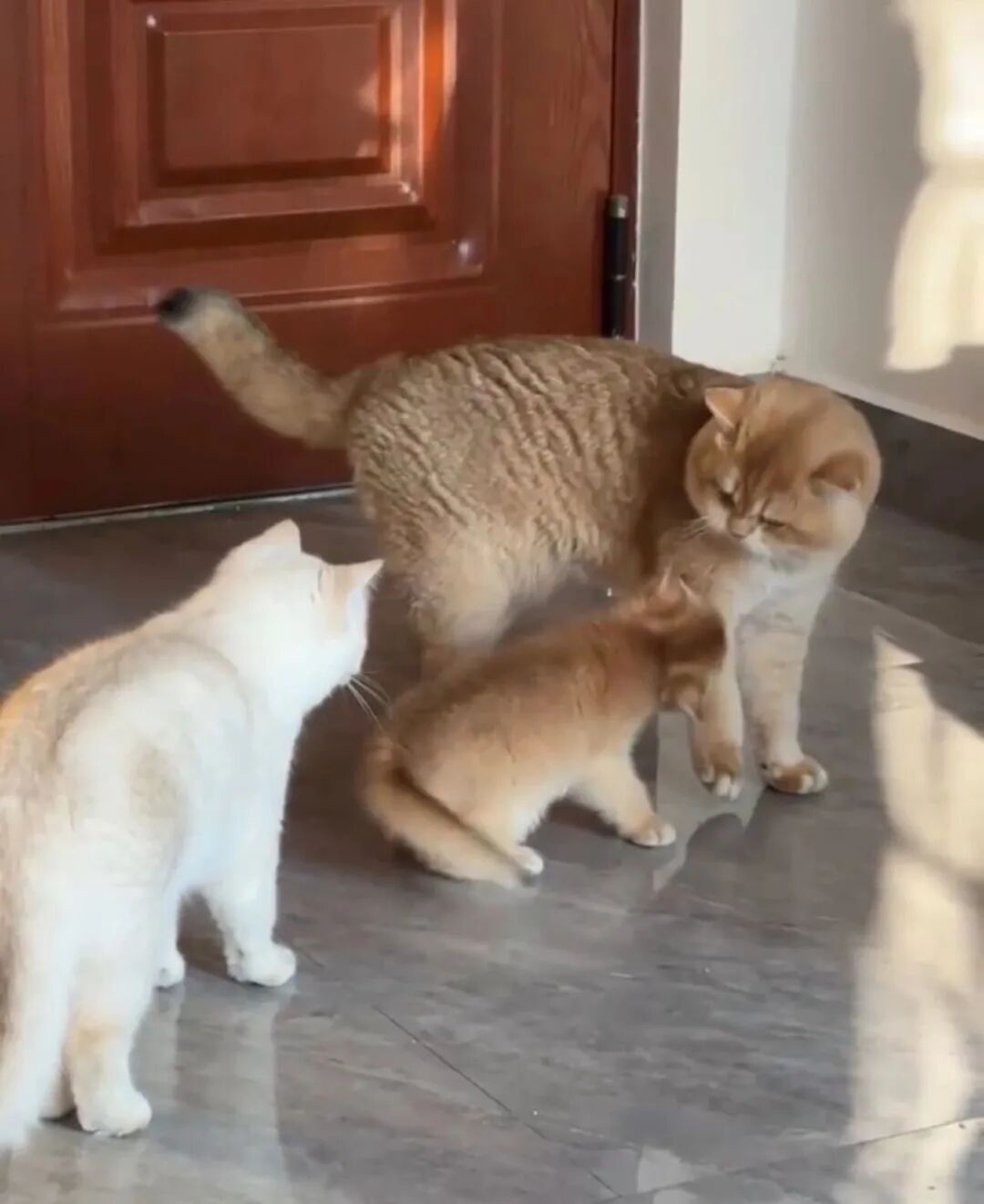 从围着闻味道的试探,到抬手管教的威严,猫爸用行动证明:就算是亲娃,犯错了也要挨训!这大概就是养娃的日常吧,前一秒还在撒娇卖萌,下一秒就被老爸当场抓获。