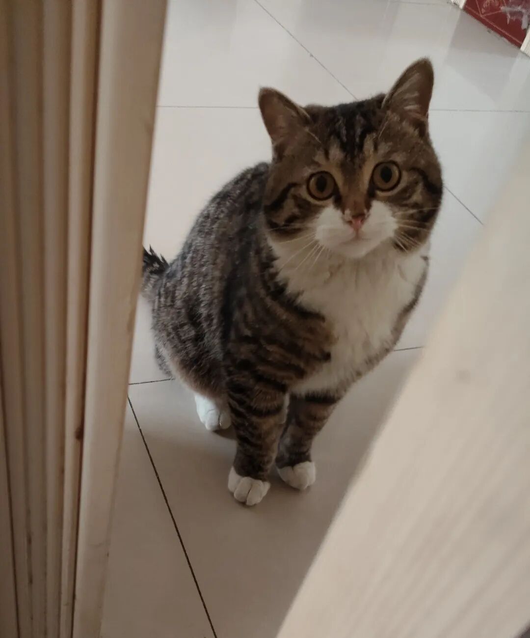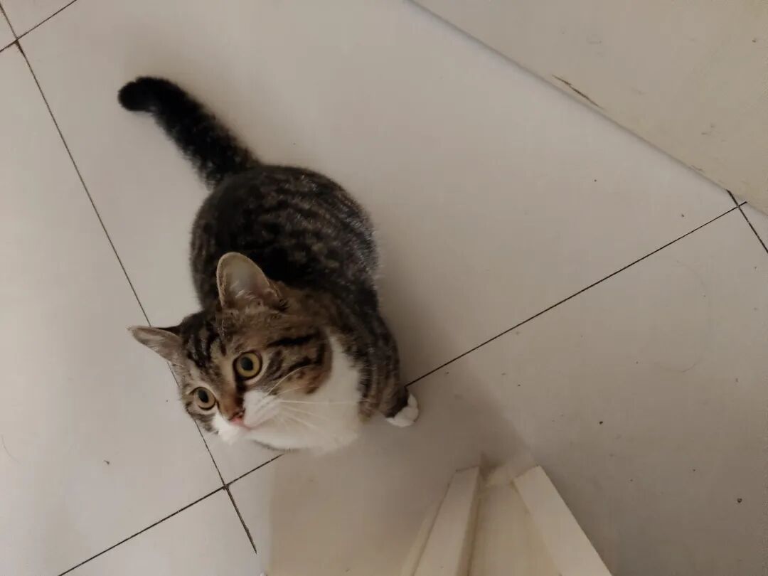 昨天晚上,我和小宝饭后出去,在小区里遛达,和小宝讲好遛达两圈就回家,就这点功夫,回到家,大宝说猫仔站在窗台上,喵喵地叫。