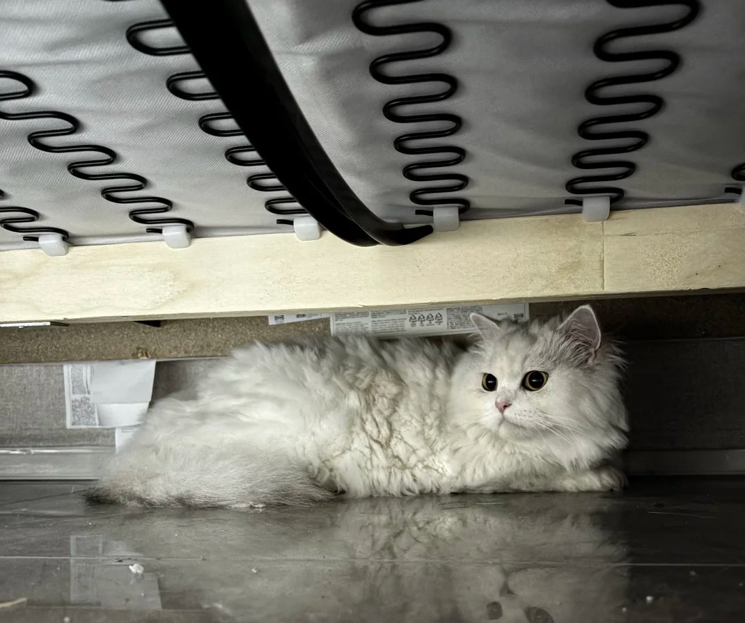 平时只是偶尔躲起来,现在能在床底、柜子里待上一整天,猫粮和水放到面前都无动于衷;