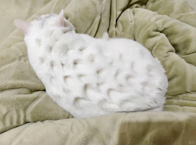 从头戳到尾,把猫咪身上的毛戳出一个又一个的洞。小红书网友@咕咕咕分享的自己的杰作。